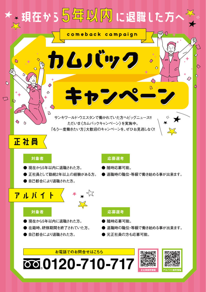 カムバックキャンペーン実施中! 2024 8/12 求職中のみなさん、こんにちは! 現在森通商ではカムバックキャンペーンを行っています。 採用 URLをコピーしました! 関連記事 2024年 7月 中途採用・お知らせ 2024年8月12日 2024年 8月 2025度 新卒採用・お知らせ 2024年8月12日 2024年 8月 中途採用・お知らせ 2024年8月8日